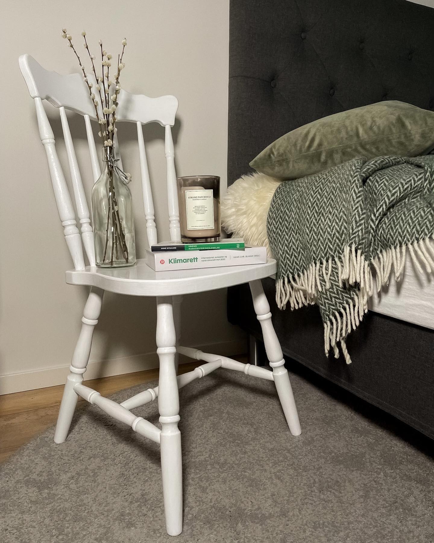 Opprinnelig gammel furustol. Blitt ny med tre strøk miljøsertifisert interiørmaling.